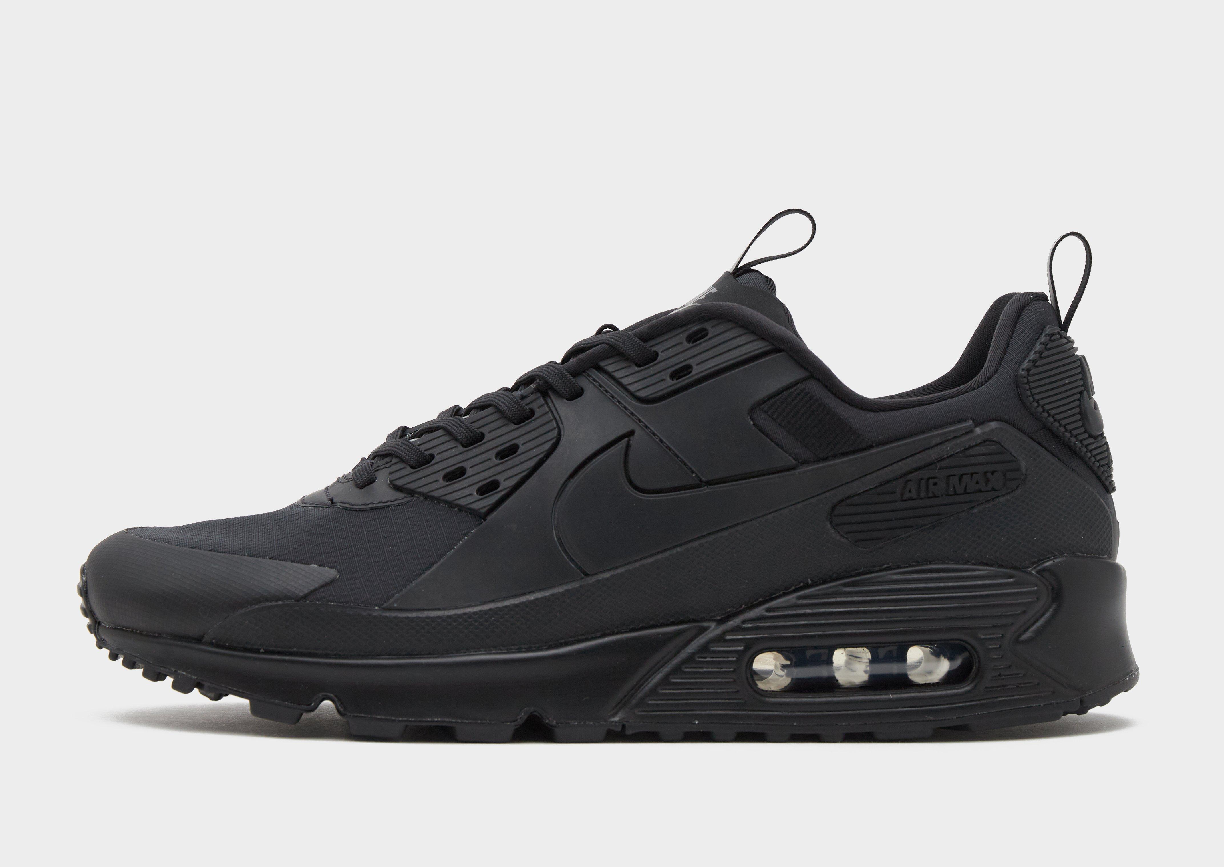 De Air Max 90 Drift is een stevige schoen voor in je collectie. Het volledig zwarte design accentueert de verschillende texturen en lagen, waaronder stevig ripstopmateriaal en rubber in combinatie met echt en synthetisch leer. Ondertussen zorgen Max Air demping en een buitenzool met wafelpatroon ervoor dat de schoen comfortabel genoeg is voor op straat of op de trail.